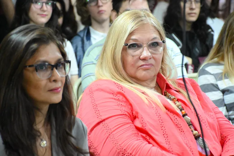 La presidente de la Cámara de Diputados, Carmen Delgado, junto a su par Zulma Galeano, participaron de la presentación de "Conectando con Señas", proyecto de alumnas de 4º año de la EET N° 24 "Simón de Iriondo". Se trata de un prototipo de App que utiliza la inteligencia artificial para captar y procesar señas en tiempo real. Con una interfaz sencilla, está diseñada para mejorar la comunicación entre personas sordas y oyentes, permitiendo una interacción más fluida entre ambas comunidades.