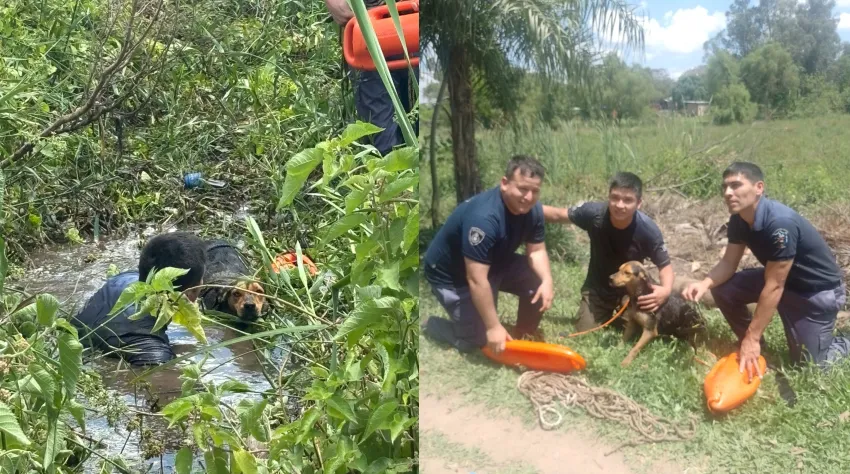 En Resistencia, personal policial rescató un perro que estaba atrapado en una laguna del barrio Villa Río Negro. Al rescatarlo, descubrieron que cayó en una trampa para nutrias.