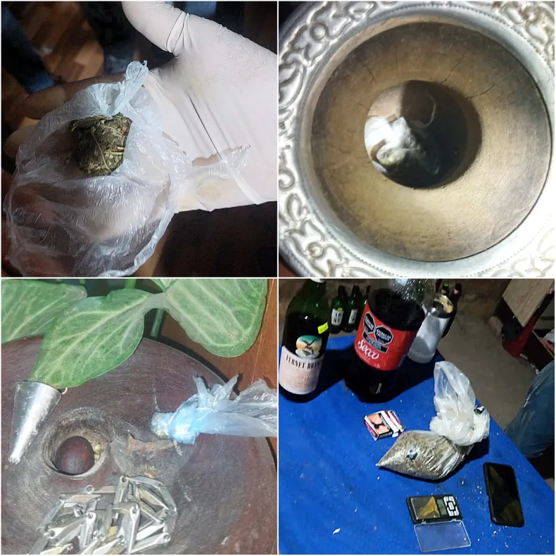 Al ingresar a la vivienda, los uniformados detuvieron a un hombre de 24 años, sospechado de comercializar estupefacientes y, al requisar el lugar, encontraron 260 gramos de marihuana distribuidos en una bolsa y seis "bochitas", escondidas dentro de un mate.