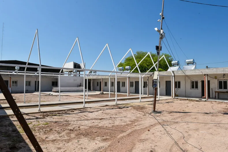 La ejecución de obra era con financiamiento del gobierno nacional pero, al ser recortada, la Provincia se hizo cargo y actualmente se construye a través del Instituto Provincial de Desarrollo Urbano y Vivienda (IPDUV).