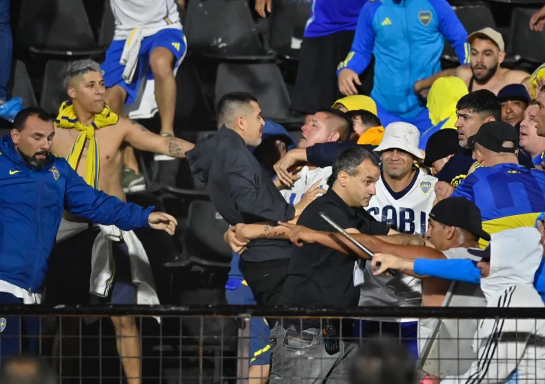 A su vez, miembros del Consejo de Fútbol de Boca, entre ellos el presidente del club azul y oro Juan Román Riquelme, bajaron de los palcos donde se encontraban disfrutando del encuentro para tranquilizar a los simpatizantes del cuadro de La Ribera.