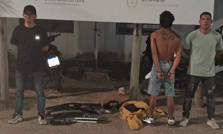 El primer caso se dio a eso de las 1:50 en la esquina de José María Toledo e Ingeniero Schulz. Allí detuvieron a dos jóvenes de 28 y 21 con una réplica de arma de fuego, un lienzo, una guitarra, un corta hierro, dos amortiguadores, plásticos de una Honda Wave y una notebook.