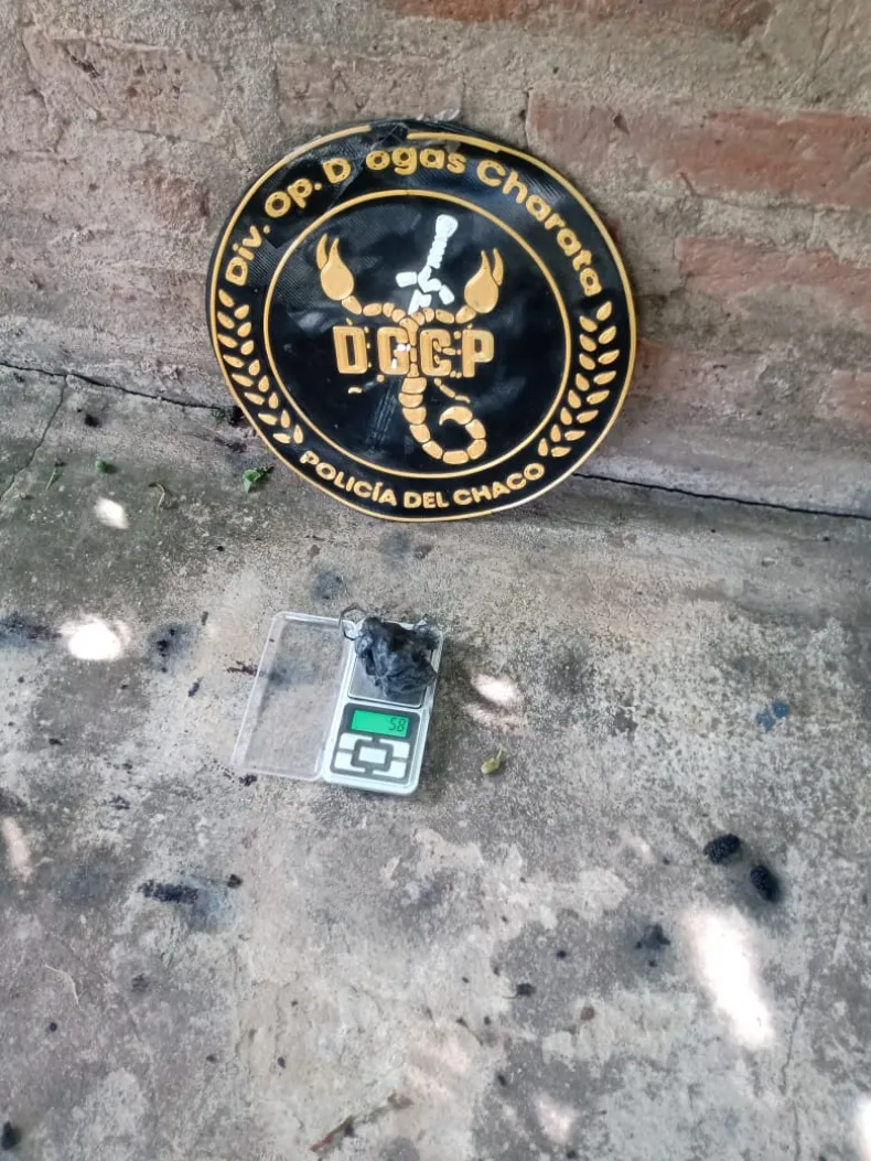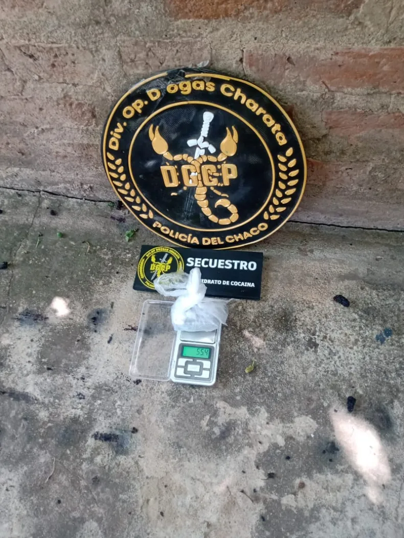 Durante la detención, se confiscó un secuestró un envoltorio de nylon tipo "bochón" que contenía trozos compactos de cocaína, con un peso total de 55.4 gramos, y dos envoltorios más pequeños con la misma sustancia. También se encontró un envoltorio negro con marihuana de 5.8 gramos, un celular marca Motorola y $ 77.800 en efectivo.