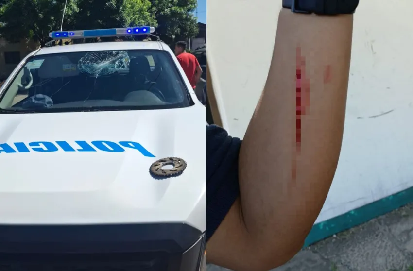 Este miércoles, alrededor de las 10:16 horas, un móvil policial que circulaba por la Avenida Hernandarias en la ciudad de Resistencia fue atacado con un objeto contundente, dejando a un agente con heridas. Según el informe policial, el hecho ocurrió en la intersección de Hernandarias y calle Molina, cuando un sujeto lanzó una pieza metálica de motocicleta —un piñón corona— contra el parabrisas del vehículo oficial.