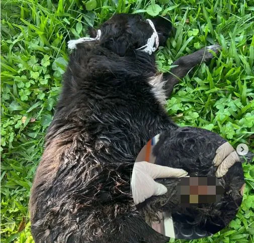 A su vez, comentó que tiene una fractura completa de columna, por lo que el animal no va a poder volver a caminar. "Tiene un solo riñón funcionando, el otro fue consumido por un parásito mejor conocido como gusano del riñón, sigue con diarrea pese a la medicación, y orina solamente por sonda, no puede hacerlo por sí solo debido a que los huesos rotos comprimen su vejiga".