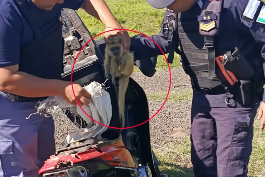 Rescatan a dos monos Carayá encerrados en el baúl de una moto, un hombre pretendía venderlos