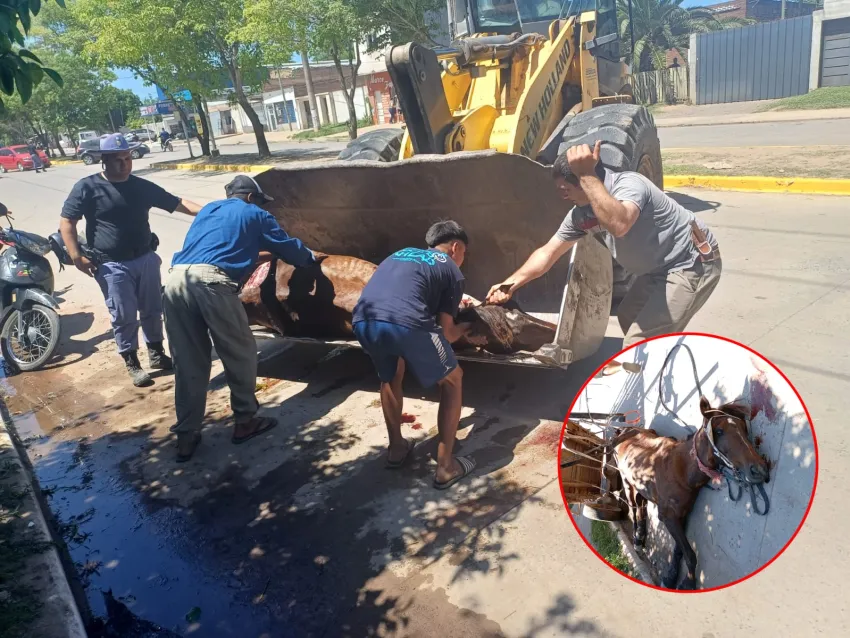 Brutal caso de maltrato animal en Fontana: una yegua murió en plena avenida tirando un carro