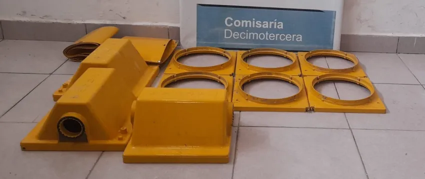 Dentro de las bolsas, los agentes hallaron dos semáforos; los mismos que habrían sido sustraídos de la jirafa de la ruta.
