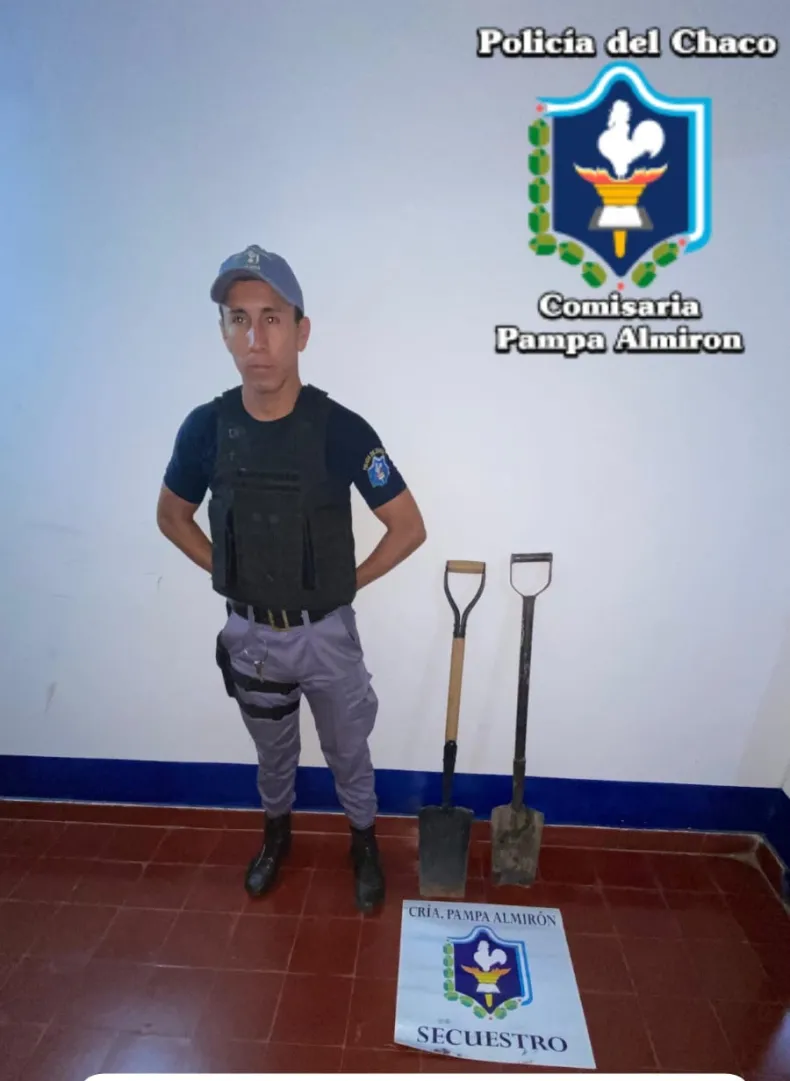 Un ciudadano informó a los efectivos de la Comisaría de Pampa Almirón que por la noche personas desconocidas ingresaron a su casa y le robaron dos palas de punta, por esta razón los policías se entrevistaron con vecinos de la zona, a fin de recuperar los bienes sustraídos y hallar a los delincuentes