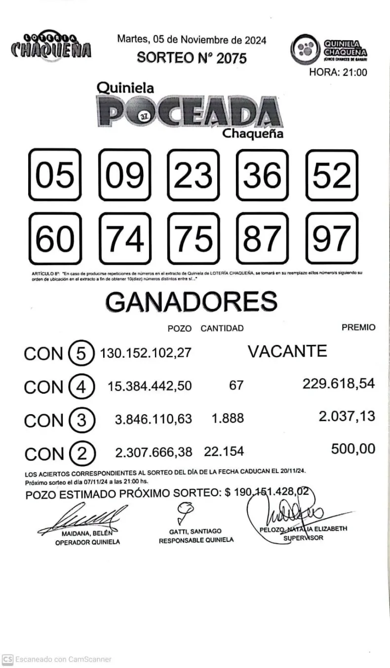 Se acumula el pozo y un chaqueño puede volverse millonario. En el sorteo de este martes 5 de noviembre, ningún jugador obtuvo los cinco aciertos y el pozo mayor quedó vacante.