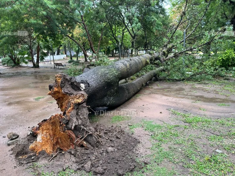 El fenómeno meteorológico, que se caracterizó por fuertes ráfagas de viento y lluvia intensa, comenzó en horas de la noche y continuó hasta la madrugada. Las autoridades municipales informaron que, además de la plaza 12 de Octubre, otras áreas de la ciudad registraron la caída de árboles y ramas, lo que afectó la circulación y dañó cables eléctricos.