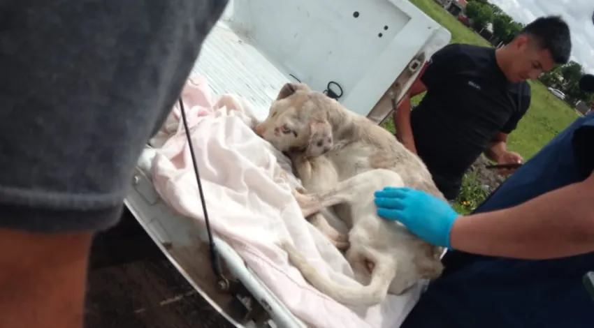 Violencia animal en Puerto Tirol: policías rescataron de la calle a un perro golpeado y desnutrido