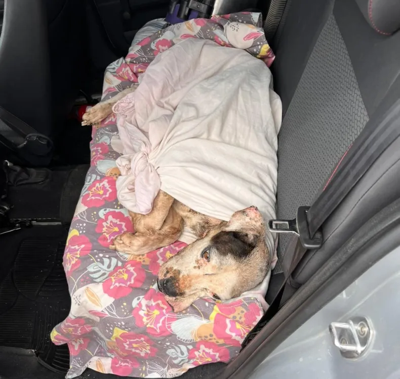 El caso fue puesto en conocimiento de la División Canes de la Policía, quienes llegaron al lugar junto a un veterinario. Tras un examen inicial, el veterinario diagnosticó que el perro sufría de anemia, desnutrición, una fractura antigua en la cola y problemas de corazón, además de tener parásitos externos como garrapatas.