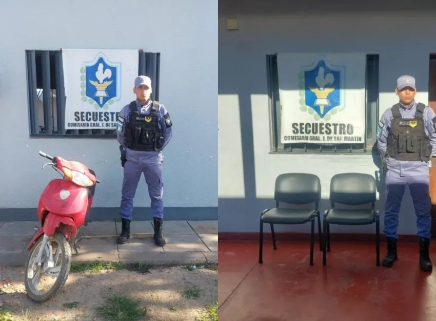 La moto era una Ghiggeri Vita de 110 cilindradas cuyo conductor incumplía con los artículos 44° y 96° del código de faltas provincial. Por otro lado, dieron con las sillas que eran trasportadas por dos sospechosos que, al ver a la policía, las abandonaron y huyeron. Los elementos fueron incautados para iniciar una investigación que dé con sus dueños.