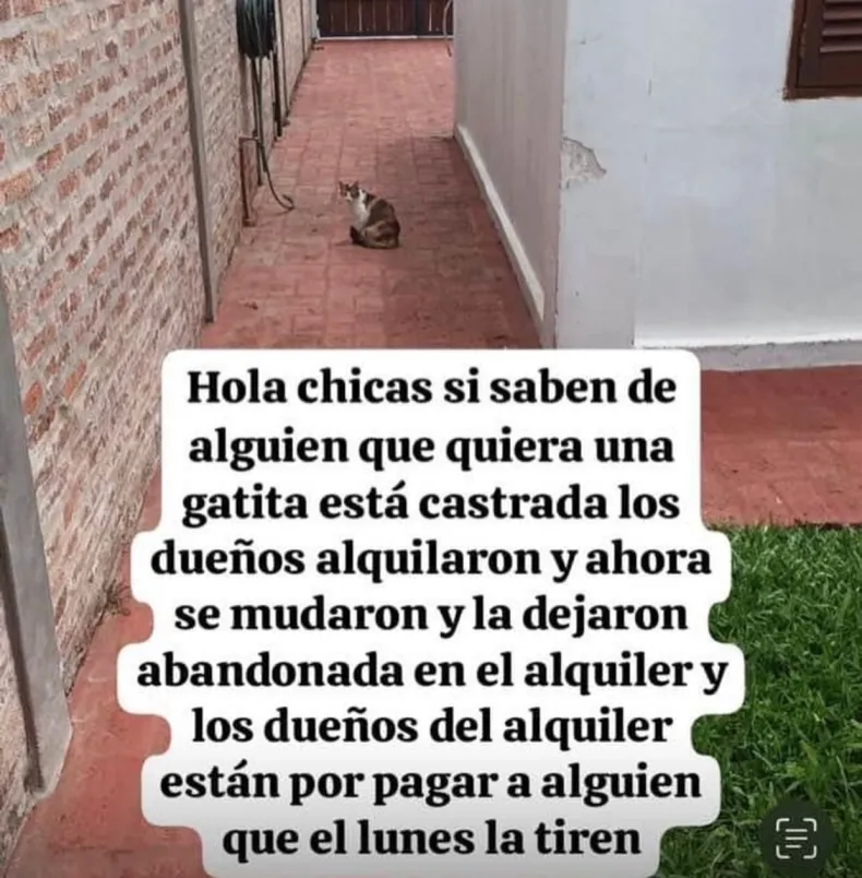 En este caso, se trata de una pequeña gatita a la cual sus antiguos dejaron abandonada tras mudarse. La mascota quedó sola en la casa y los encargados del alquiler "quieren tirarla".