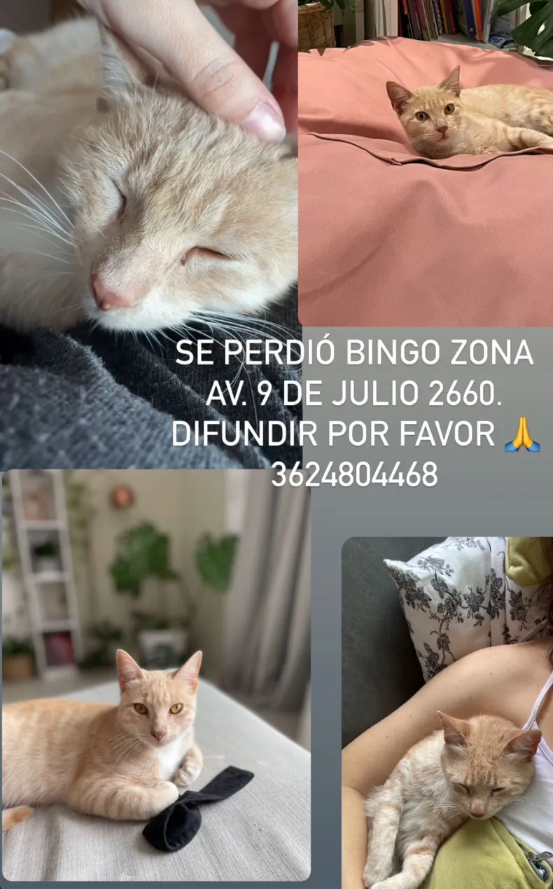 Este domingo una familia de Resistencia extravió a su mascota, un gato color naranja llamado Bingo. "Su familia está muy triste, su dueña tiene cinco años y se llama Ludmila", comentaron a Diario TAG.
