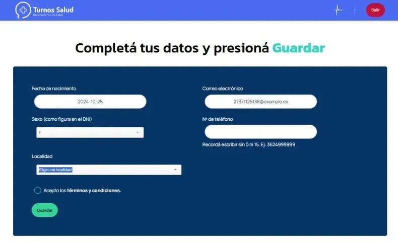 En el caso de querer sacar turnos para un menor, se deberán seguir los mismos pasos, y agregar los siguientes datos del niño o adolescente: DNI. CUIL, nombre, apellido, fecha de nacimiento y sexo.