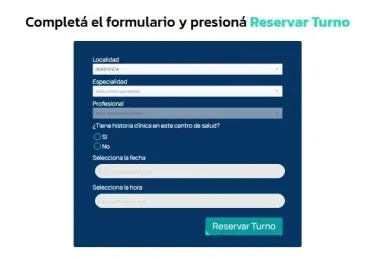 Además, se debe indicar si se tiene historia clínica en el centro de salud elegido y seleccionar la fecha y hora del turno.