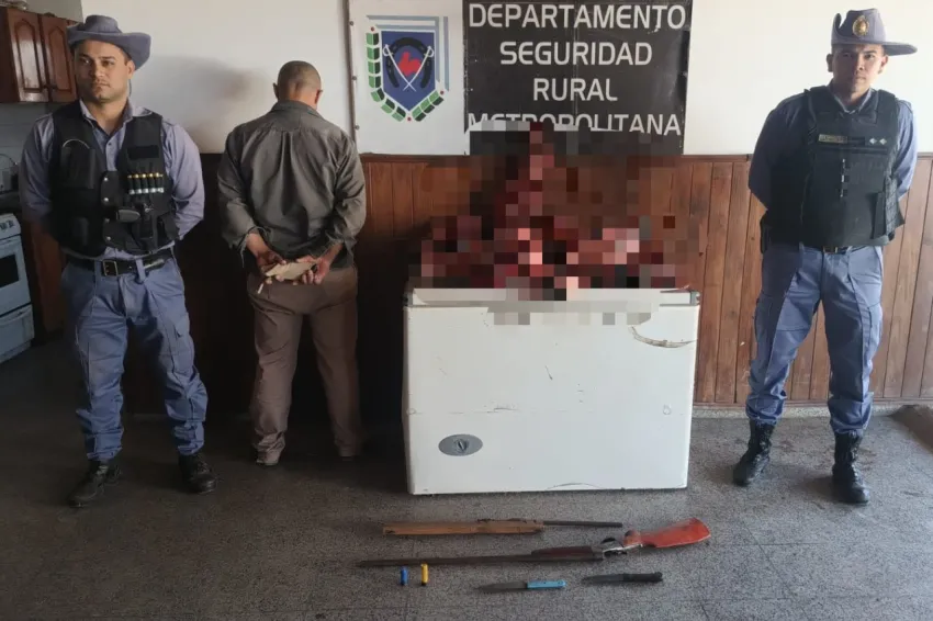 Durante el operativo, se allanó el domicilio de un hombre identificado como A.F de 35 años, donde se secuestraron aproximadamente 40 kilos de producto cárnico de animal vacuno, cuatro patas, una cabeza de vacuno con pelaje negro, dos cuchillos y un freezer. Además, se encontraron y confiscaron un arma de fuego tipo escopeta, cartuchos y un arma de fabricación casera calibre 22.