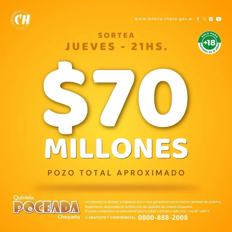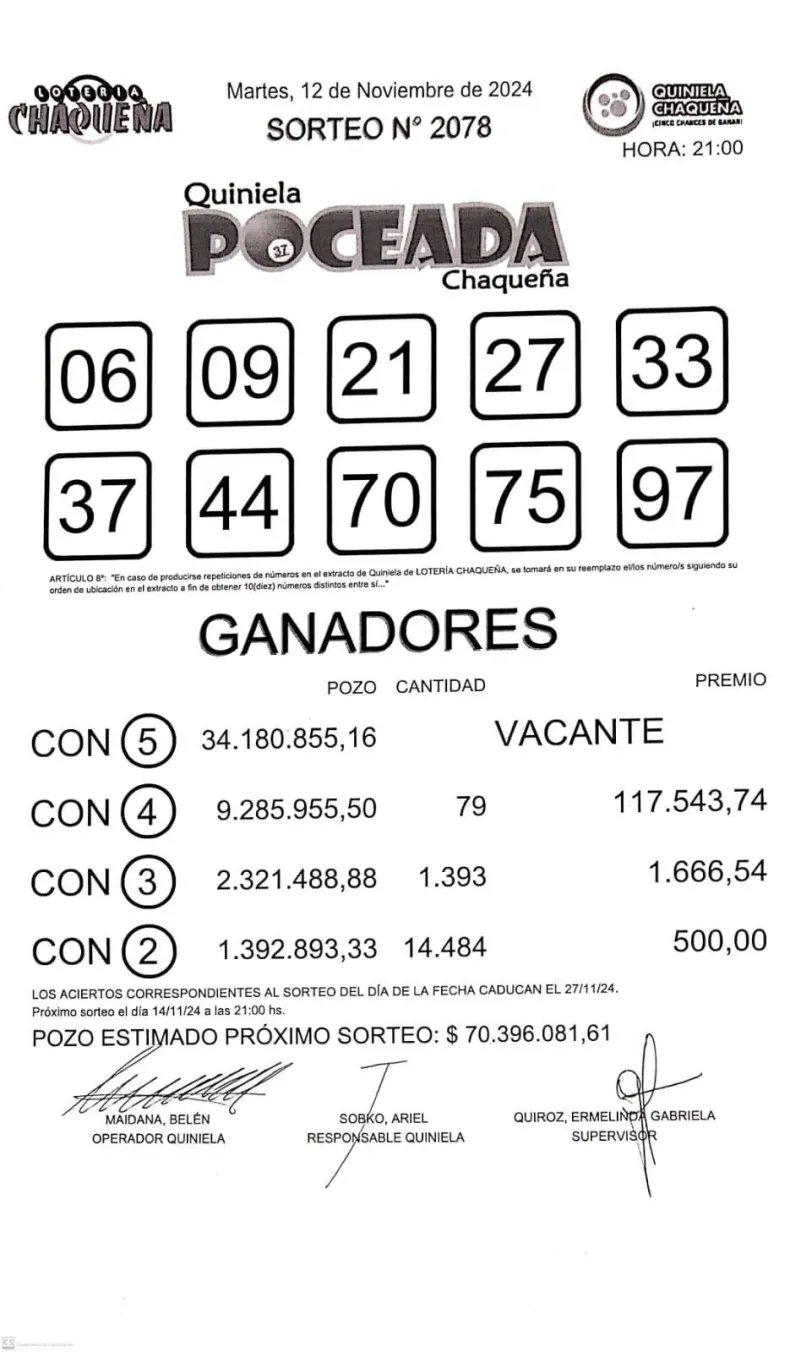Se acumula el pozo y un chaqueño puede volverse millonario. En el sorteo del martes 12 de noviembre, ningún jugador obtuvo los cinco aciertos y el premio mayor quedó vacante. Ahora, este jueves 14 de noviembre se sortearán 70 millones de pesos a las 21 horas.