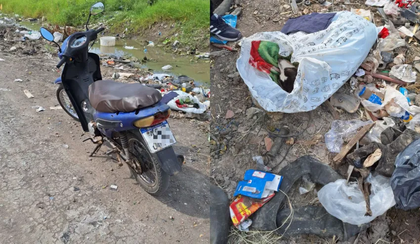 El ciudadano arrojó el paquete en un mini basural, y le labraron actas de infracción por contaminación ambiental y la falta de documentación del rodado.
