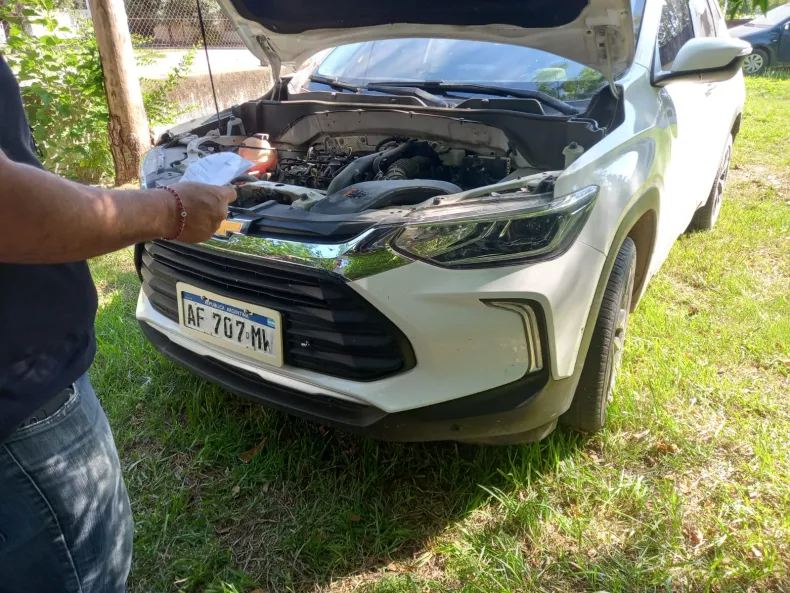 El vehículo en cuestión era un automóvil Chevrolet modelo Tracker 1.2 T, de color blanco. Sin embargo, tras la revisión, se determinó que la patente era apócrifa. Tanto el número de motor como el de chasis presentaban grabados no originales de fábrica, lo que indicaba una adulteración evidente.