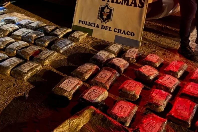 En la madrugada de este sábado, efectivos de la Comisaría Las Palmas incautaron casi 224 kilos de marihuana tras una persecución que comenzó en la localidad de Las Palmas y culminó en un terraplén del barrio La Isla. El procedimiento comenzó cuando el personal de la Comisaría observó un automóvil realizando maniobras sospechosas y, al intentar detenerlo, el conductor aceleró y emprendió la fuga, trasladándose hasta la vecina localidad de La Leonesa y regresando a Las Palmas.