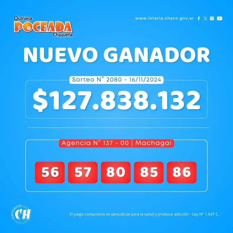 La Poceada volvió a convertir a un chaqueño en millonario y esta vez un vecino de Machagai se llevó un pozo acumulado que supera los 127 millones de pesos.