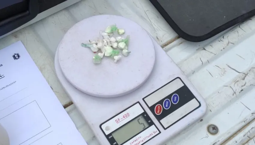 En el momento solicitaron la colaboración del personal de Drogas, quienes a su arribo, realizaron la prueba de campo, arrojando como resultado cocaína con un peso de 5 gramos.