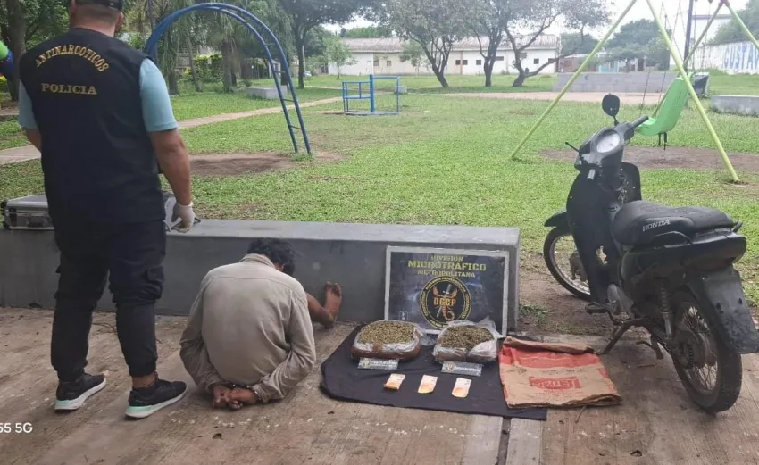 En mayor detalle, el personal policial recibió información sobre un individuo que estaría vendiendo sustancias ilegales en las inmediaciones de calle Haití y avenida San Martín. En el momento se desplegó un operativo en el lugar, donde identificaron a un hombre que coincidía con la descripción brindada. El sujeto, que se encontraba a bordo de una motocicleta, llevaba una bolsa de panadería sospechosa entre sus piernas.