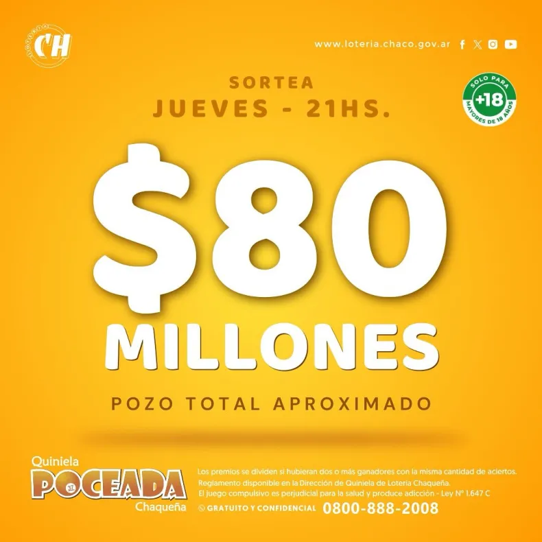 Quedó vacante la Poceada y este jueves se sorteará un pozo de 80 millones de pesos