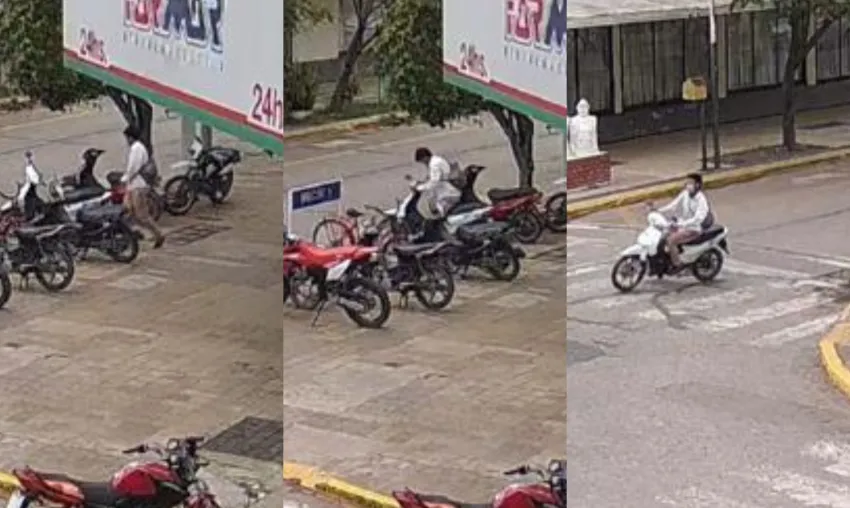 En la mañana del lunes un joven de 23 años dejó su moto estacionada en la vereda de una farmacia de Sáenz Peña para ingresar a trabajar, al salir de allí notó que el vehículo fue sustraído. El hurto quedó registrado gracias a las cámaras de seguridad municipales, sin embargo, aún no se identificó al ladrón.