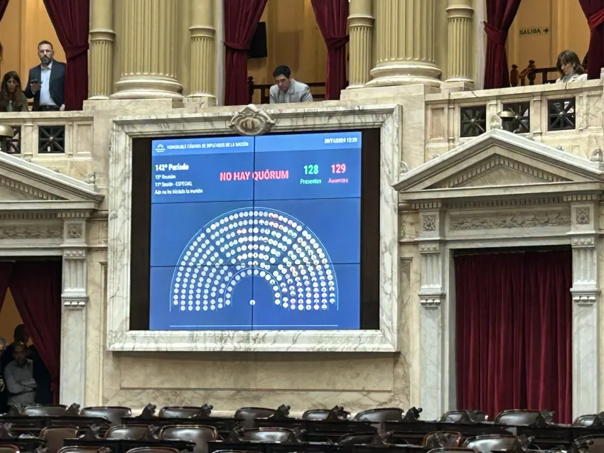 Pasados los 30 minutos desde el inicio de sesión, el tablero indicaba 128 presentes, el PRO de solicitó prorrogar 15 minutos el inicio y el presidente de la Cámara, Martín Menem, no hizo lugar al pedido, por lo que la sesión cayó.