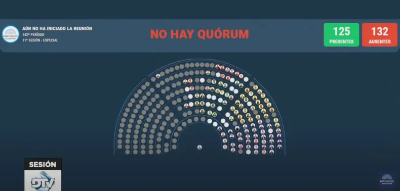 Se necesitaba 129 legisladores presentes para iniciar el debate, pero una ausencia, impidió realizar la sesión. El PRO pidió una prórroga de tiempo y la presidencia de la Cámara lo negó.