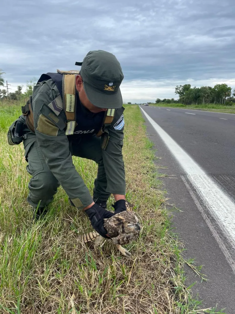Este miércoles, efectivos del Escuadrón 14 "Las Palmas" fueron alertados acerca de la presencia de un ave silvestre en la banquina de la Ruta Nacional N° 11, a la altura del kilómetro 1058, en cercanías a la Sección Seguridad Vial "Lapachito".