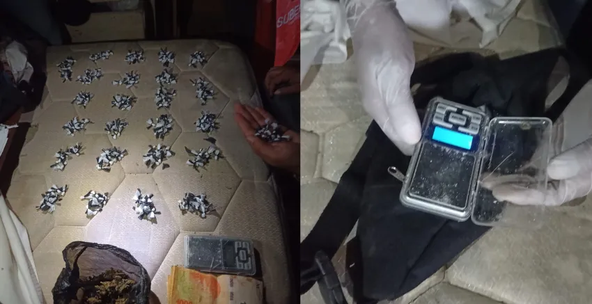 También se decomisaron un celular marca Motorola modelo E7 Plus, una tijera con mango negro, un cuaderno con anotaciones de interés para la causa, una balanza de precisión en funcionamiento sin marca visible, y bolsas de polietileno de colores negro y blanco.