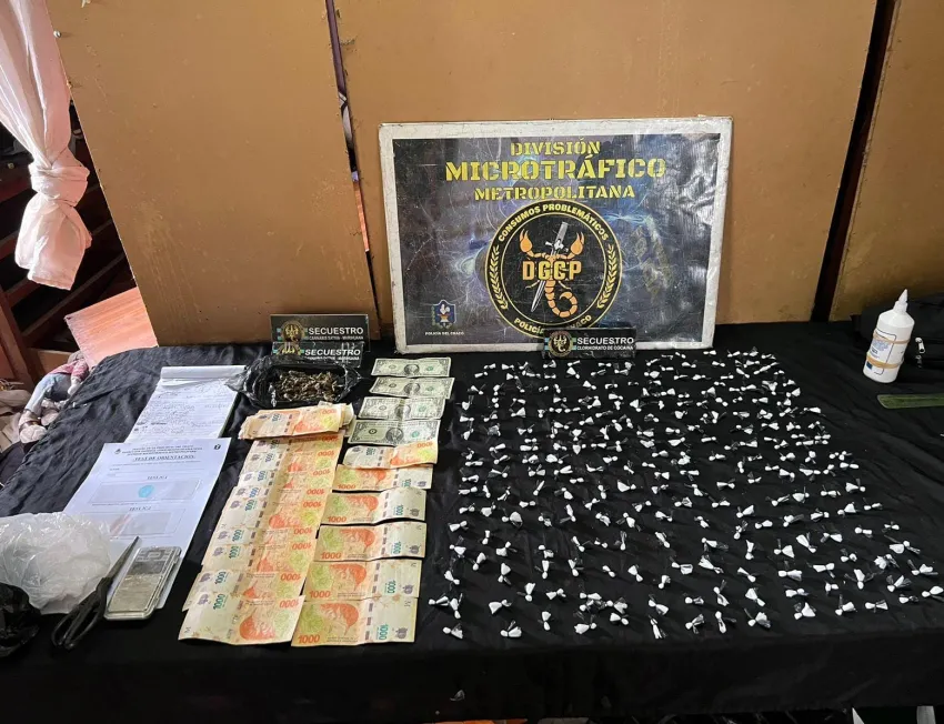 Pasada las 11 de la mañana, los agentes antinarcóticos se dirigieron hasta la calle Fray Bertaca al 2.600 aproximadamente donde realizó un allanamiento sobre una vivienda donde presuntamente se comercializaba estupefacientes. Una vez en el lugar incautaron unas 252 "bochitas" de cocaína con un peso total de 28 gramos, un trozo de marihuana con un peso de 18,7 gramos, 17.500 pesos, un celular, un cuaderno con anotaciones, una tijera y una balanza de precisión.