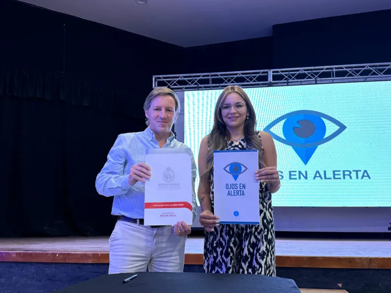 "Ojos en Alerta" es un sistema que permite a los vecinos informar, a través de WhatsApp, situaciones delictivas o sospechosas. La clave del programa radica en su enfoque participativo, integrando activamente a comerciantes, choferes y vecinos.
