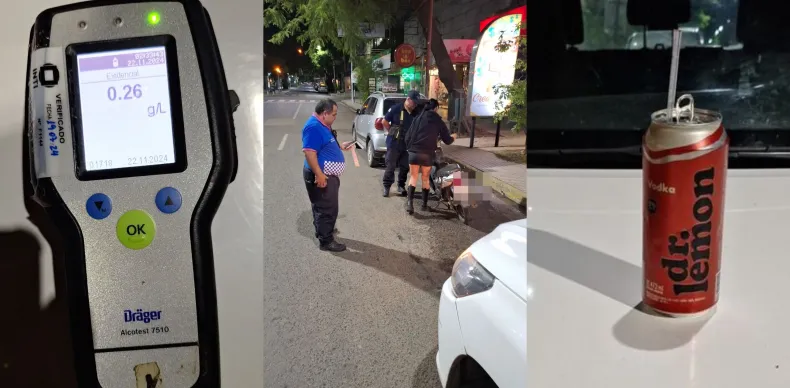 Sin embargo, este no fue el único caso de irresponsabilidad al volante registrado durante los controles. Una joven circulaba en moto sin casco y con una lata de bebida alcohólica en la mano. Fue detenida por los inspectores, quienes, al realizarle el test de alcoholemia, detectaron un nivel de 0,26 gramos por litro, superando el límite permitido.