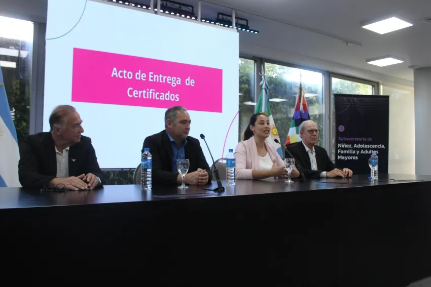 Por convocatoria de la Subsecretaría de Niñez, Adolescencia, Familia y Adultos Mayores, del Ministerio de Desarrollo Humano, en el Salón Obligado de Casa de Gobierno, se realizó la entrega de certificados a integrantes de unos 20 espacios institucionales y de bien público, de distintas localidades, donde accedieron al trayecto formativo unos 300 nuevos preventores en la problemática de consumos de sustancias.