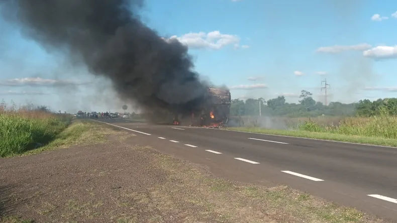 Un colectivo se incendió por completo en la Ruta 11