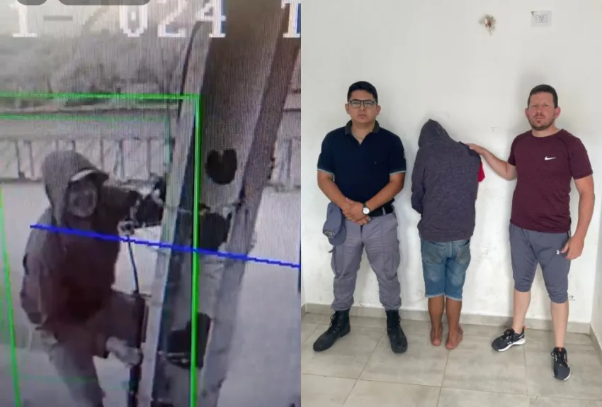 Luego de atraparlo, lo llevaron a la División Medicina Legal y después hacia la unidad para ser alojado, al ingresar, un hombre sale al cruce de los efectivos y comenta a estos que el aprehendido sería el autor del robo de una cámara de seguridad que se encontraba en el predio de una cooperativa de la que es encargado.