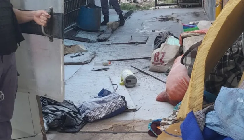 A raíz de la medida, los detenidos se volvieron más agresivos, arrojando objetos contundentes como palos de madera y un termolar hacia el personal de guardia. Como resultado, varios impactos alcanzaron al oficial de servicio y a dos agentes de la guardia.