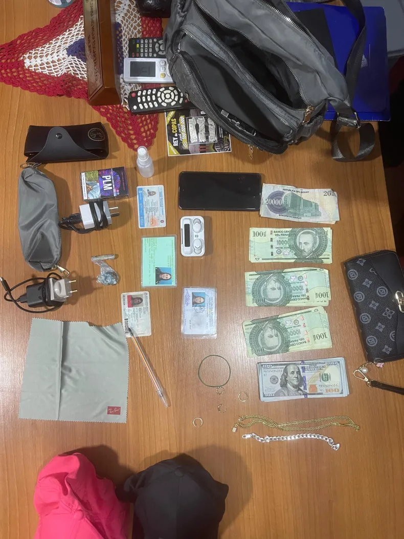 Lo particular del caso es que, al momento de ser detenida, la delincuente tenía en su poder: $ 2.400 dólares en efectivo, 2,670,000 guaraníes, una cadena de color metal dorado, una pulsera de color plata, ocho pendientes, cuatro documentaciones a nombre del aprendida y una celular marca Motorola G72.