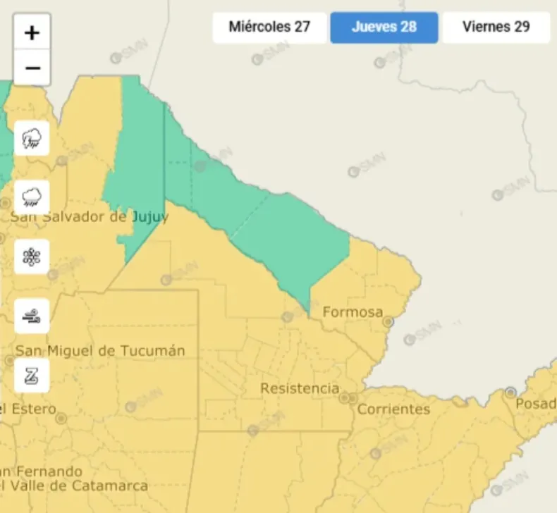 El Servicio Meteorológico Nacional advierte que el área se verá afectada por tormentas de intensidad variable, algunas de ellas fuertes o severas.
