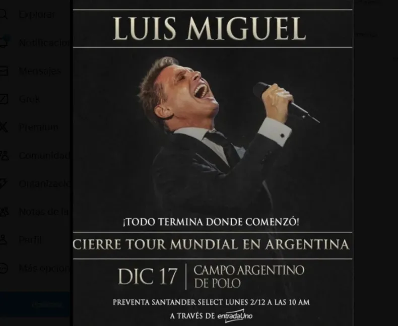 El "Luis Miguel Tour", considerado la gira más exitosa del mundo según Billboard, culminará el próximo 17 de diciembre en el Campo Argentino de Polo, Buenos Aires. Este cierre marca el final de un recorrido histórico que comenzó en Argentina el 2 de agosto de 2023.
