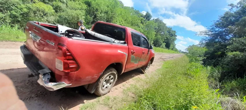 Al llegar al lugar, los agentes constataron la presencia de una camioneta Toyota Hilux 4x2 de color rojo, sin dominio colocado y con faltantes de autopartes. Al inspeccionar la numeración del chasis y otras partes del motor encontradas en la caja del vehículo, se detectaron irregularidades visibles que podrían estar relacionadas con un delito.