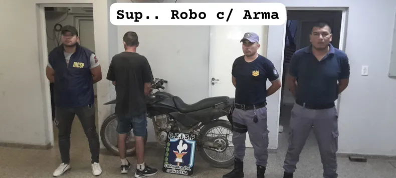 El primer hecho se trata de un robo con arma, donde denunciaron la sustracción de un teléfono celular. La División Investigaciones de la Policía, gracias al material fílmico aportado por el municipio y tareas investigativas posteriores logró la detención del supuesto autor del hecho y el secuestro de prendas de vestir y motovehículo utilizado para consumar el mismo.