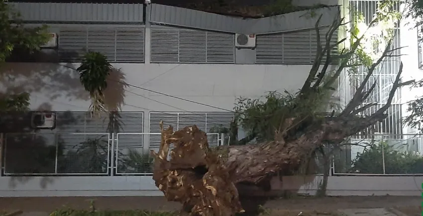 Árboles caídos en la ciudad: uno de ellos rompió las rejas de la Escuela Primaria N° 41