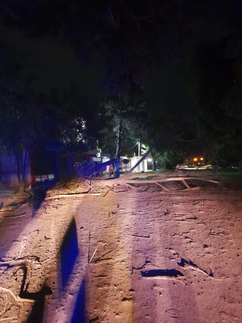 Además, en cercanías a la calle Seitor al 400, un árbol que fue derribado por el viento cayó y destruyó el muro perimetral de una vivienda. Al llegar los policías al lugar, hicieron constar que no se afectó el cableado eléctrico y que el domicilio no tiene riesgo de derrumbe.